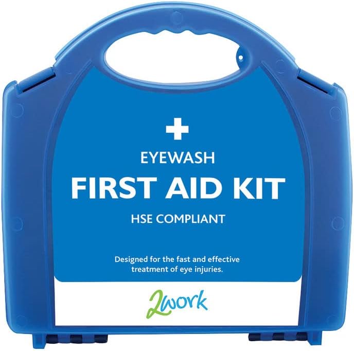 This handy and convenient 2Work portable eye wash station is ideal for use at home, in the office, or in remote workplaces. The sturdy box unclips to reveal the 4x eye wash pods dressing room, eye cushion and an entire mirror stored in a strong, durable blue plastic box easily identifiable. With an integral carry handle for easy storage and convenient access.