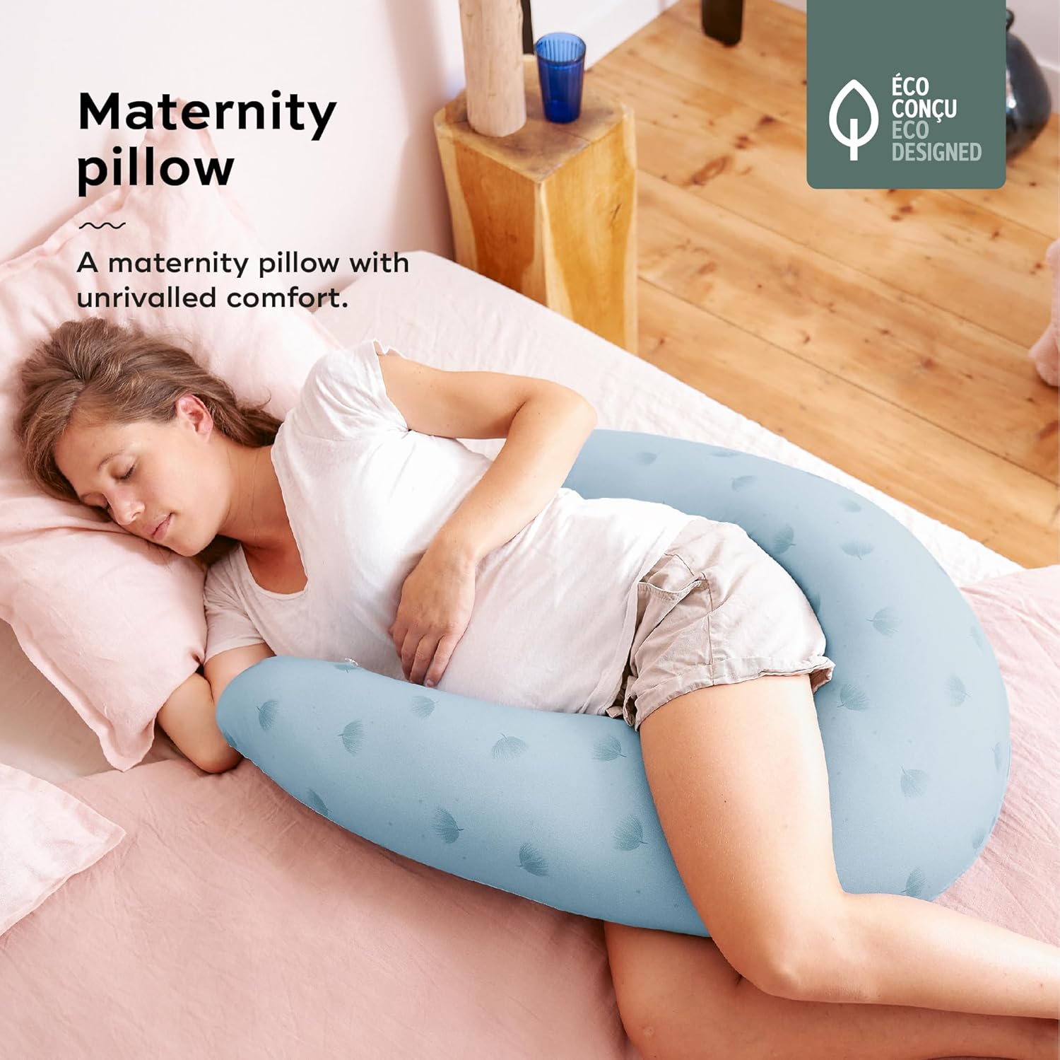 PREGNANCY CUSHION: Its large elongated format adapts to the anatomy of the pregnant woman and her positions. Supports the belly, back and legs at the same time