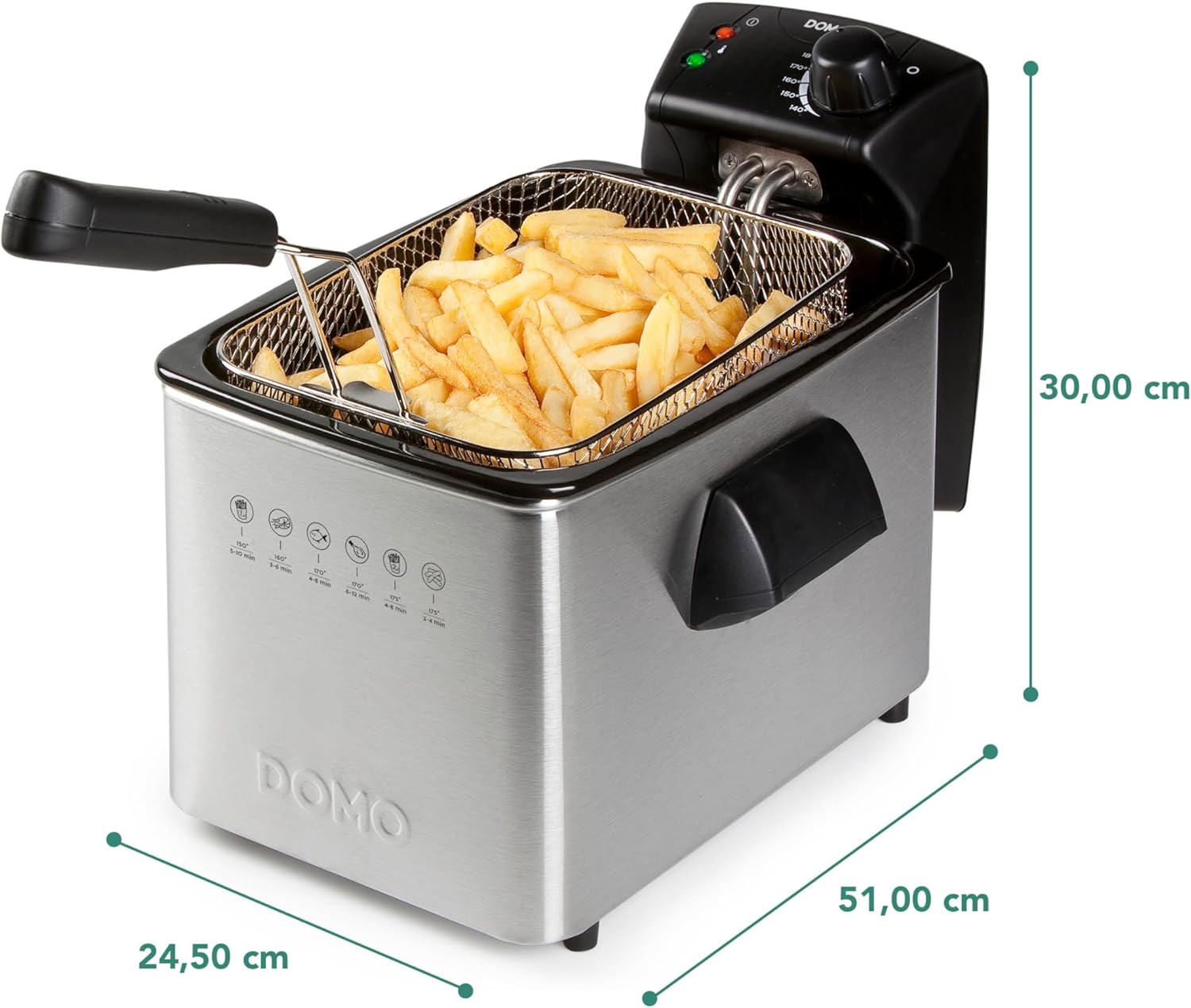 Domo DO465FR 3000W 4 Litre Stainless Steel Deep Fryer