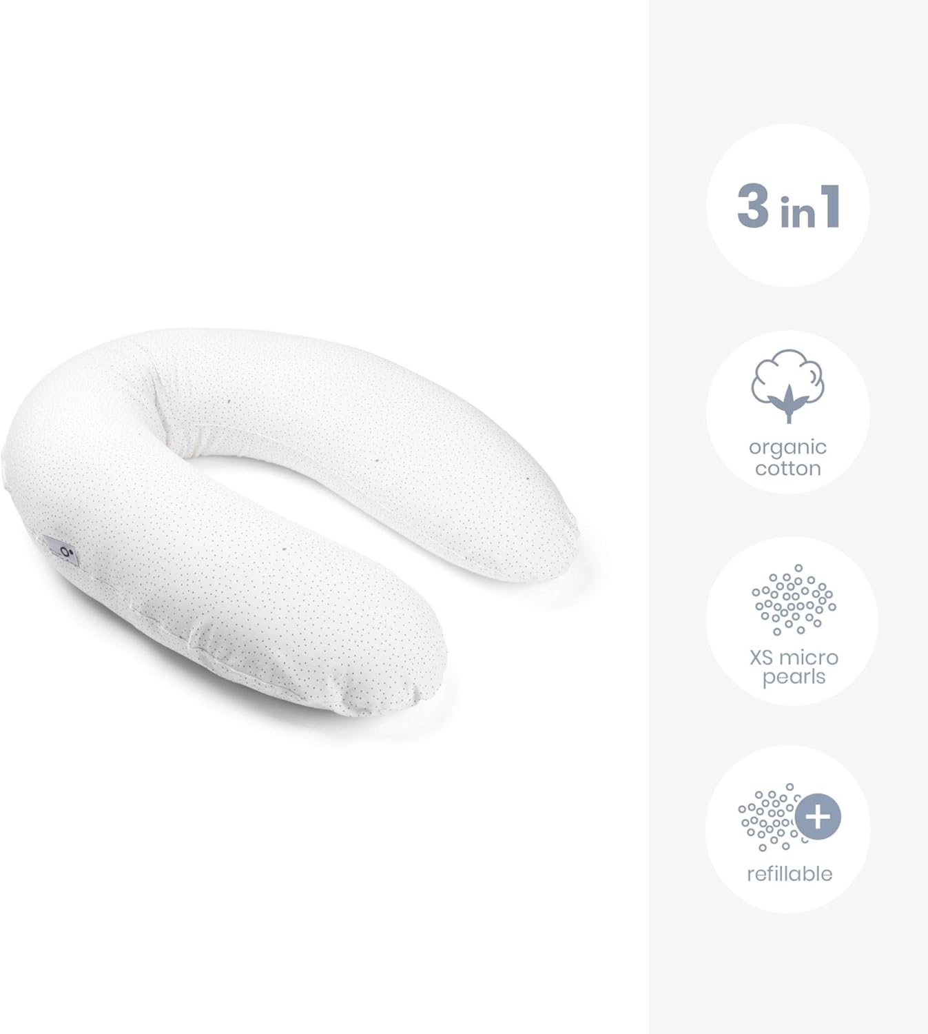 DOOMOO Pregnancy & Nursing Pillow Buddy, Silver Dots