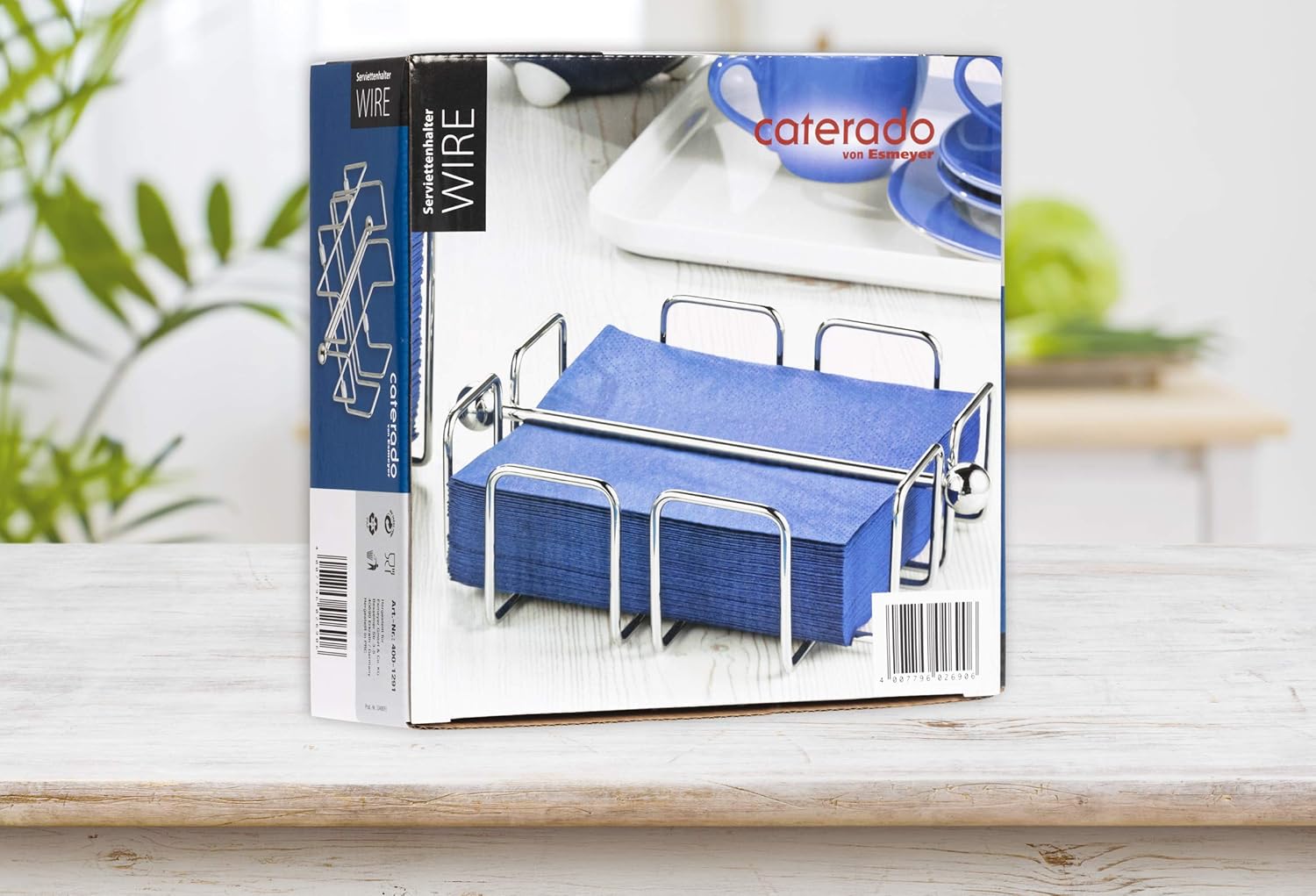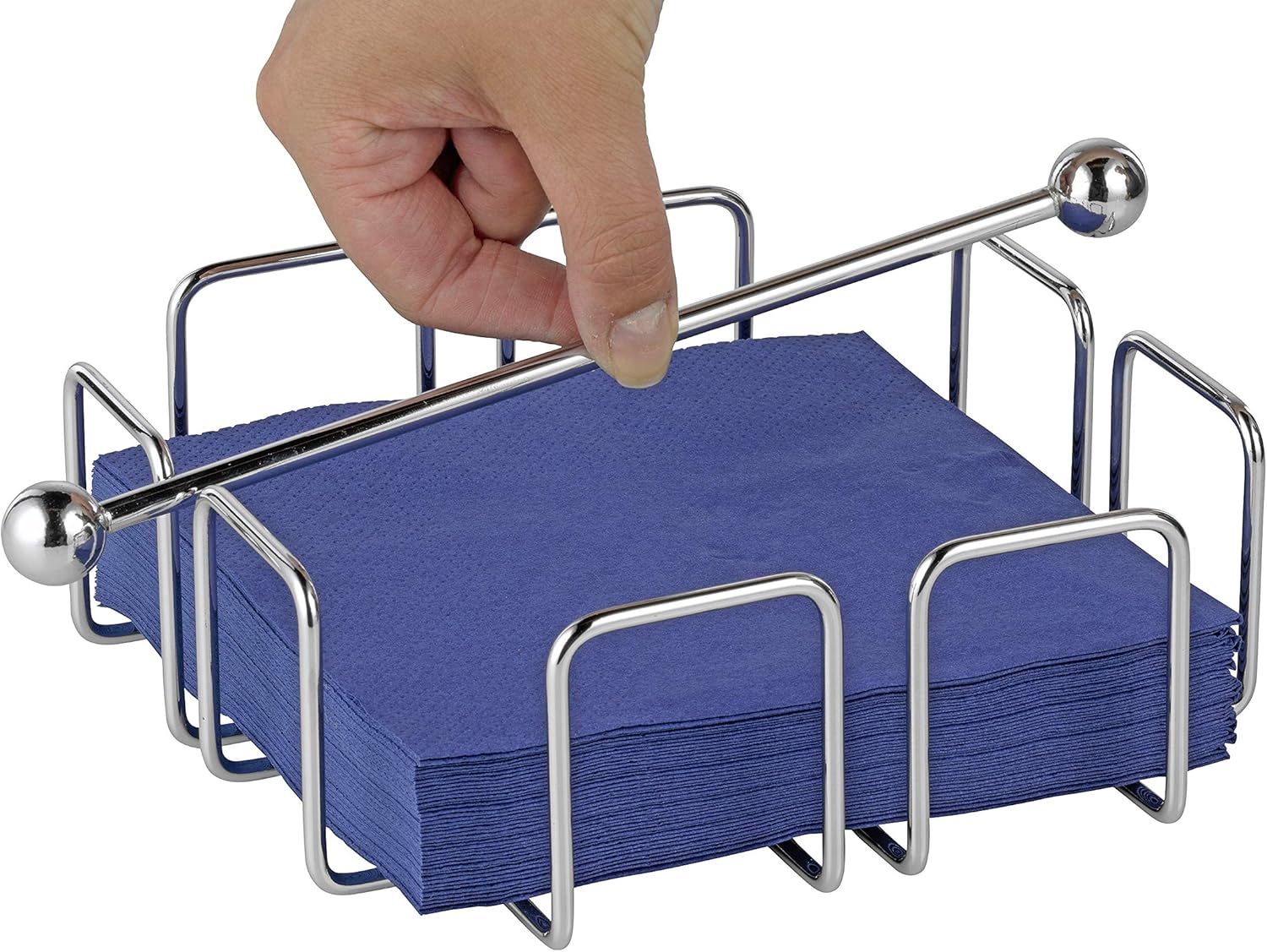 Servilletero WIRE de metal cromado, para aprox. 50 unidades. Con 4 topes de plástico para un soporte más estable en la superficie.