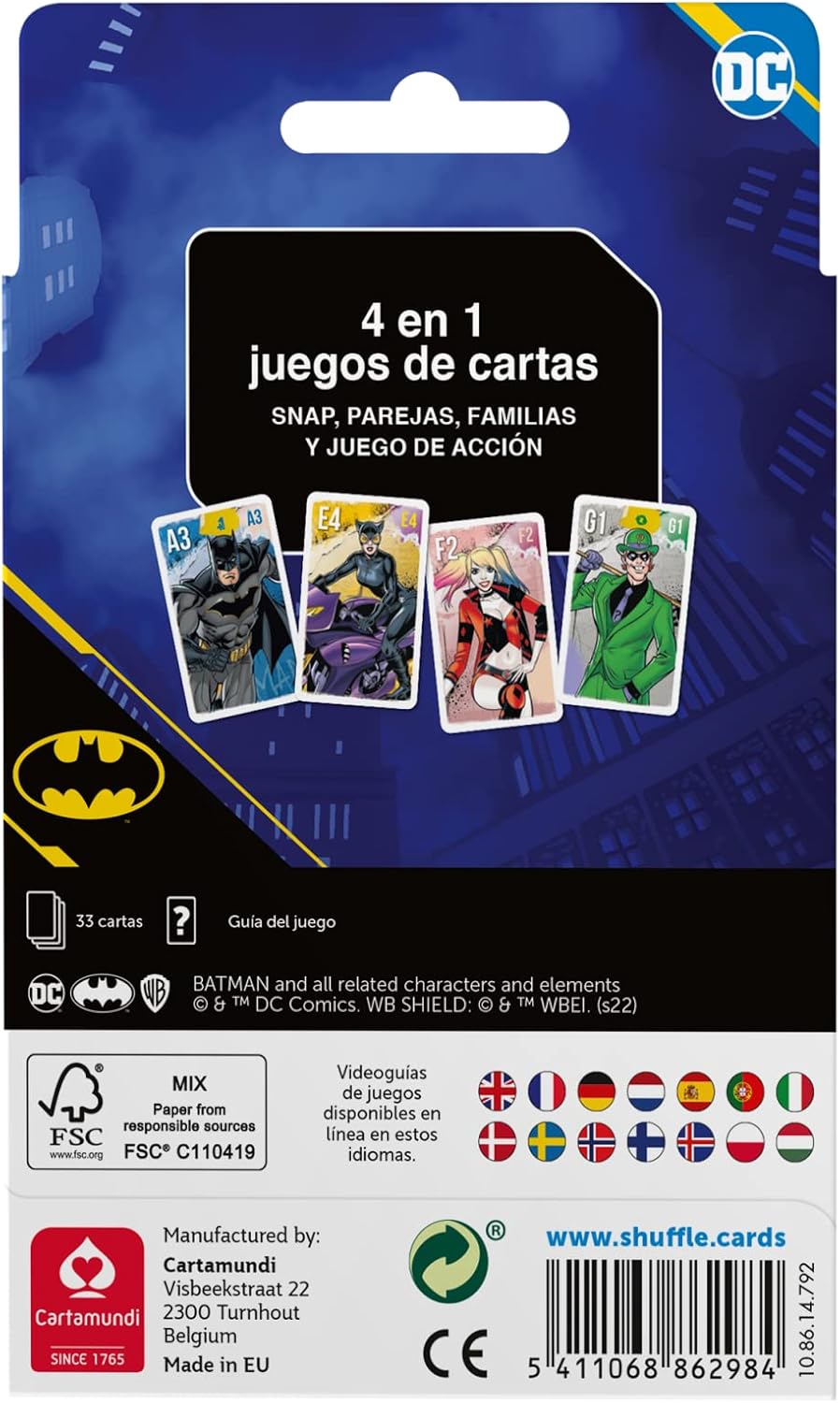 Play Snap, Families, Couples game or Action game with your favorite characters from the Batman comics and movies. Model in Spanish. Includes instructions in multiple languages.