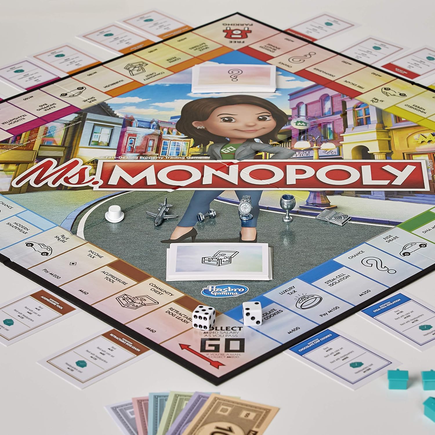 En el juego de Miss Monopoly las mujeres reciben una mayor paga al comienzo del juego y cuando pasan por la vía y en lugar de comprar propiedades, los jugadores compran algunos de los artículos que no existían sin las originales mujeres que los inventan.
