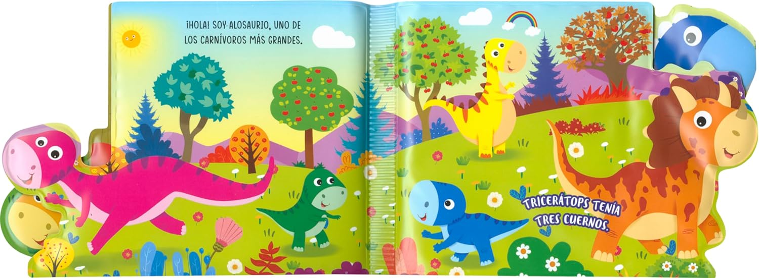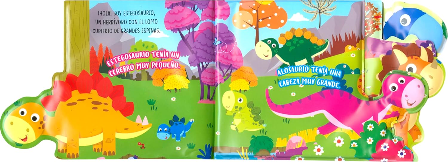 ¡Hora de bañarse! Seguro que te encanta el agua, pero, por si acaso, tienes este libro de baño con el que podrás hacer que todo sea más divertido. Coloridas ilustraciones de dinosaurios en un formato ideal para el bebé.
