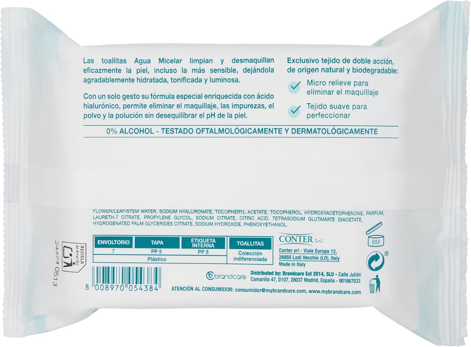 A solution for all skin types, enriched with hyaluronic acid and micellar water, to cleanse and tone the skin, leaving it hydrated and luminous. With a single gesture its special formula enriched with hyaluronic acid, allows you to remove makeup, impurities, dust and pollution without imbalancing the pH of the skin. Exclusive dual-action fabric, of natural origin and biodegradable: • Micro relief to eliminate makeup • Soft fabric to perfect