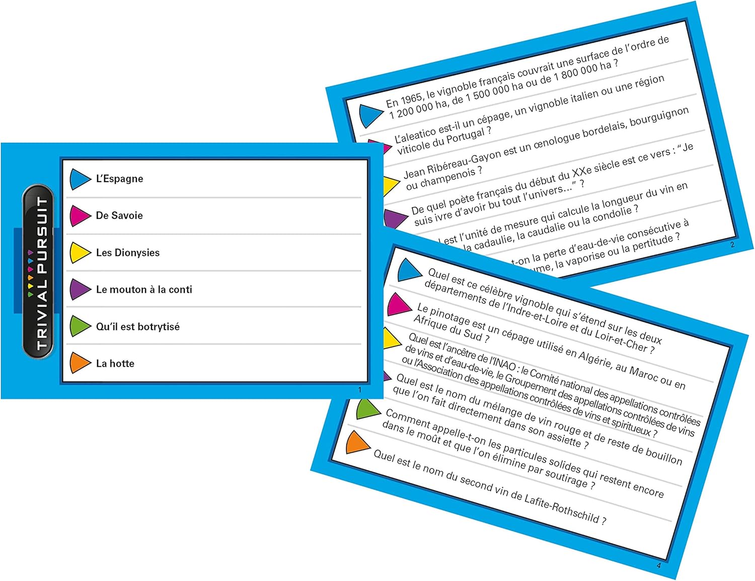 Pon a prueba tus conocimientos sobre el vino y sorprende a tus amigos con este Trivial Pursuit de 1800 preguntas divididas en 6 categorías: geografía del vino, terruños y variedades, historia del vino, cultura y vino, ciencias y vino y una categoría “sorpresa”.